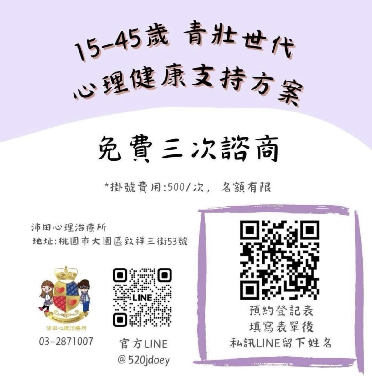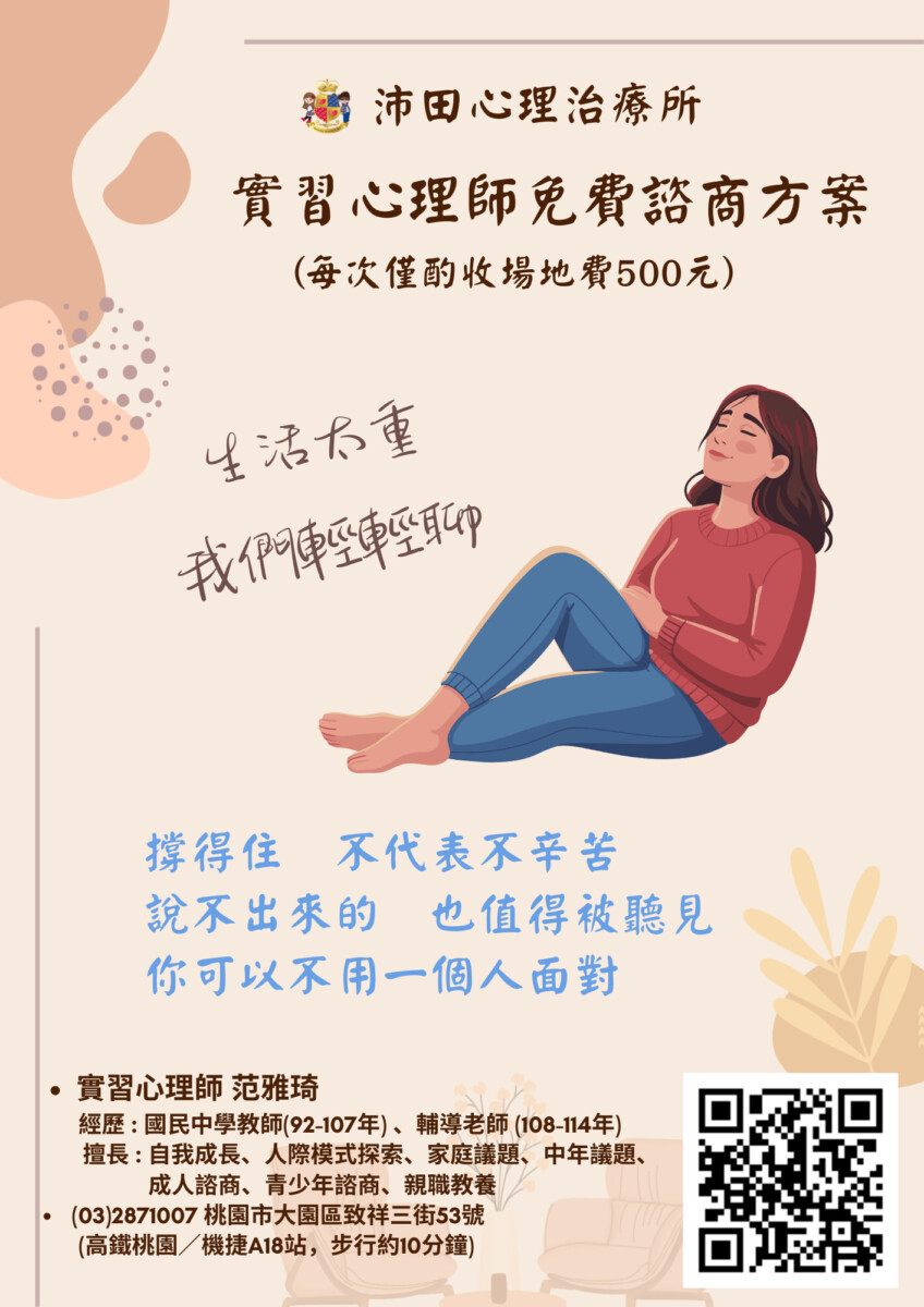 沛田心理治療所2026-01-28 19:46:072026-01-28 19:47:19實習心理師免費諮商方案