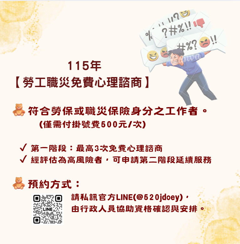 沛田心理治療所2026-04-06 10:25:272026-04-06 10:51:47115年勞工職災免費心理諮商